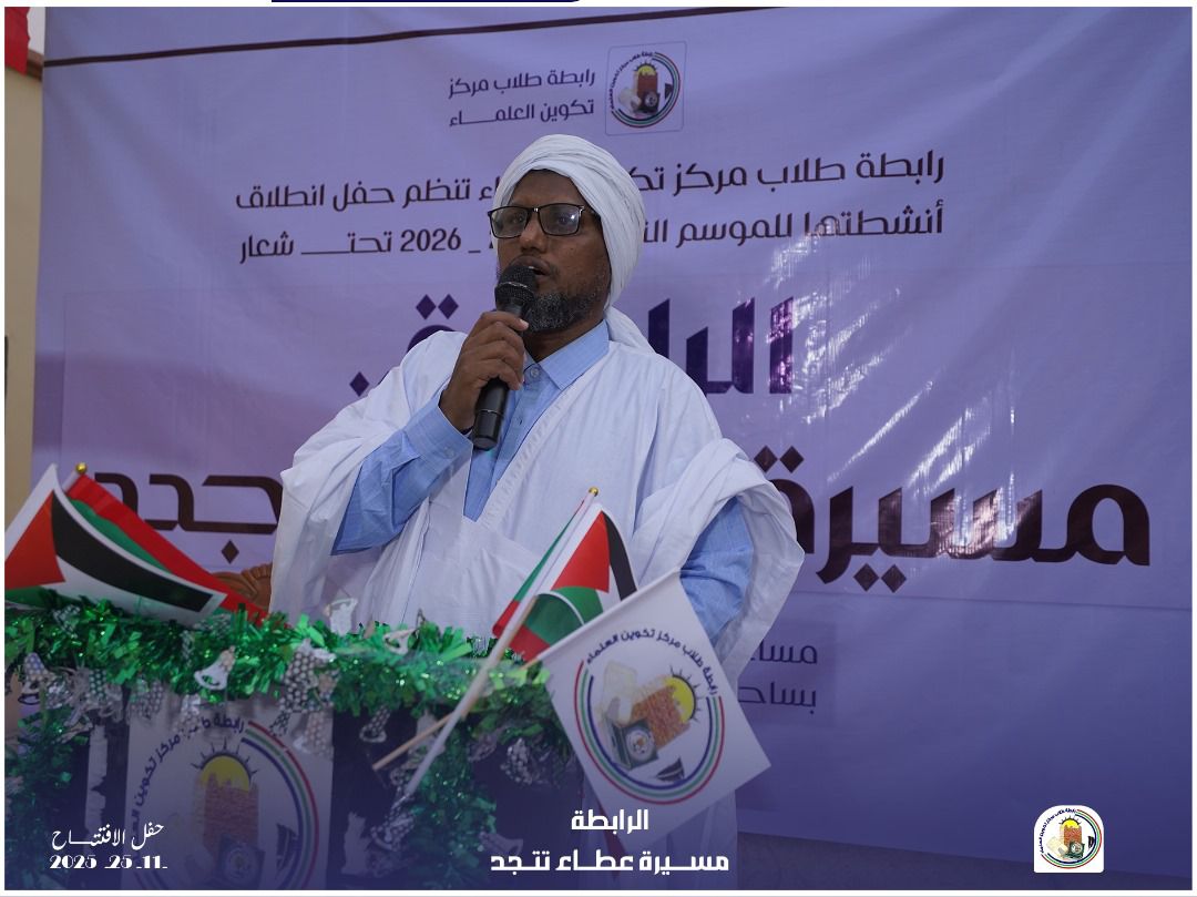 إيذانا بانطلاق الركب الثقافي ومواصلة في البناء الرابطي نظمت رابطة طلاب مركز تكوين العلماء أمس الثلاثاء 4 جمادى الآخرة1447 الموافق 25 نوفمبر 2025، بساحة المركز حفل افتتاح أنشطة الموسم الطلابي الجديد تحت شعار: