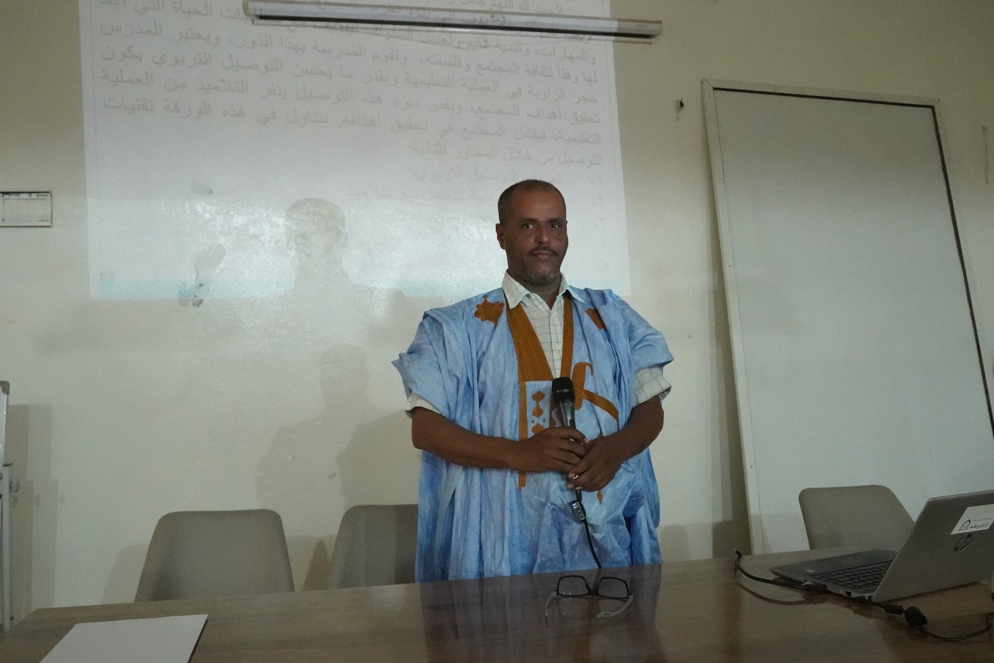 الدورة الأولى التي نظمت تحت عنوان "مهارات التوصيل" مع المفتش: محمدن ولد الرباني تحدث فيها عن ضرورة اكتساب مهارات التوصيل وتحقيق التفاعل بين الأستاذ وطلابه مقدما جملة من المعلومات الضرورية في المجال ..